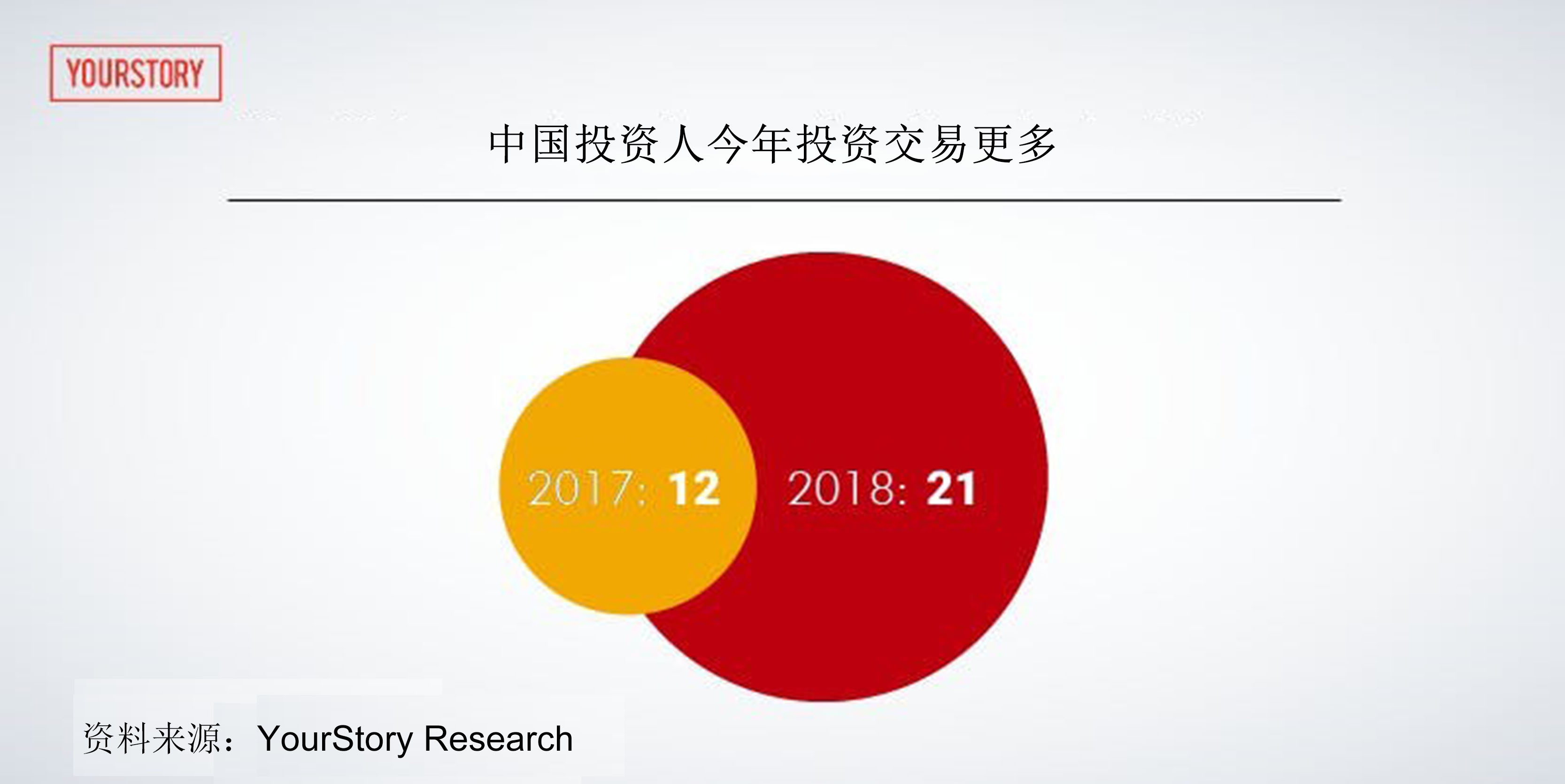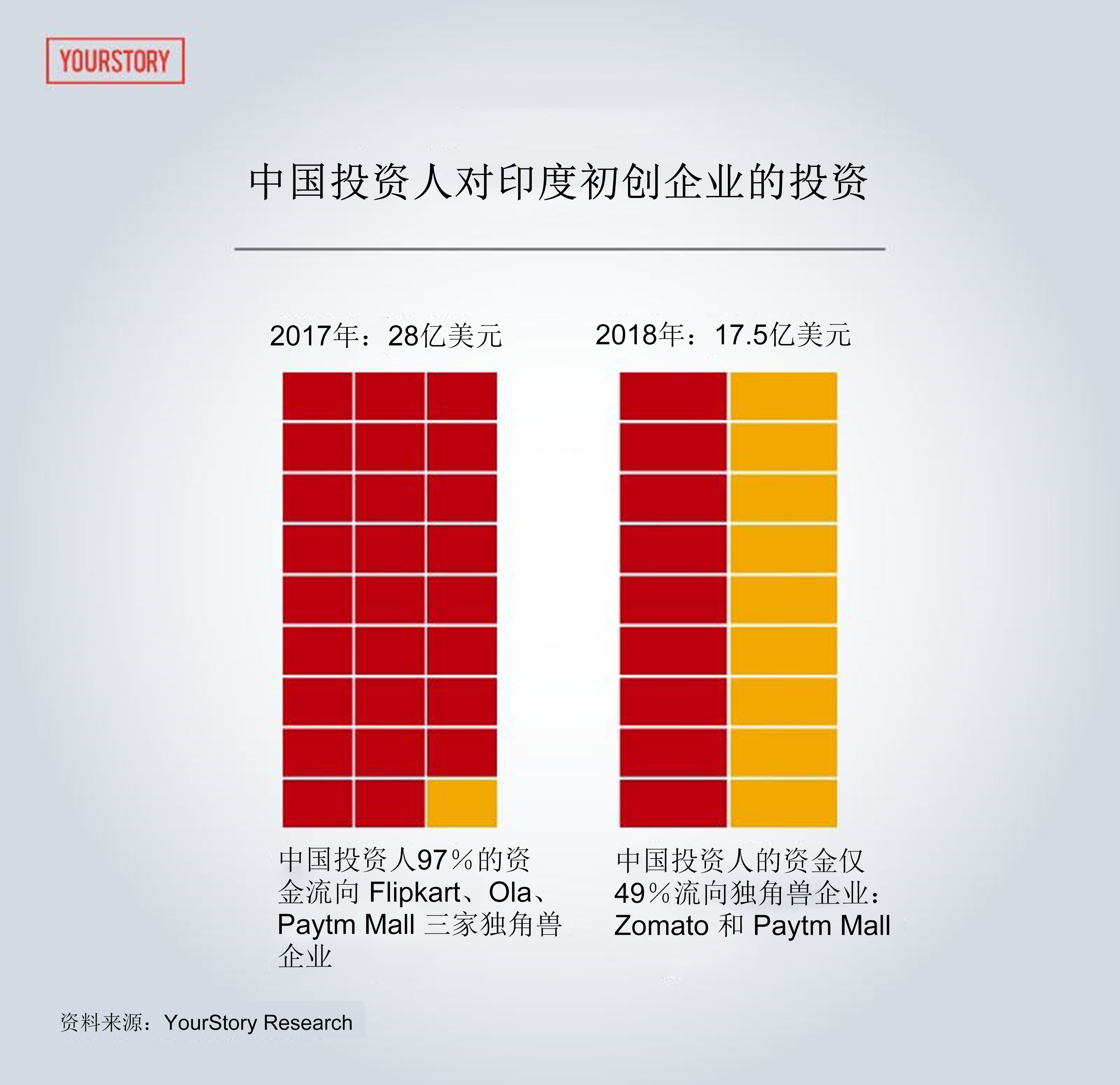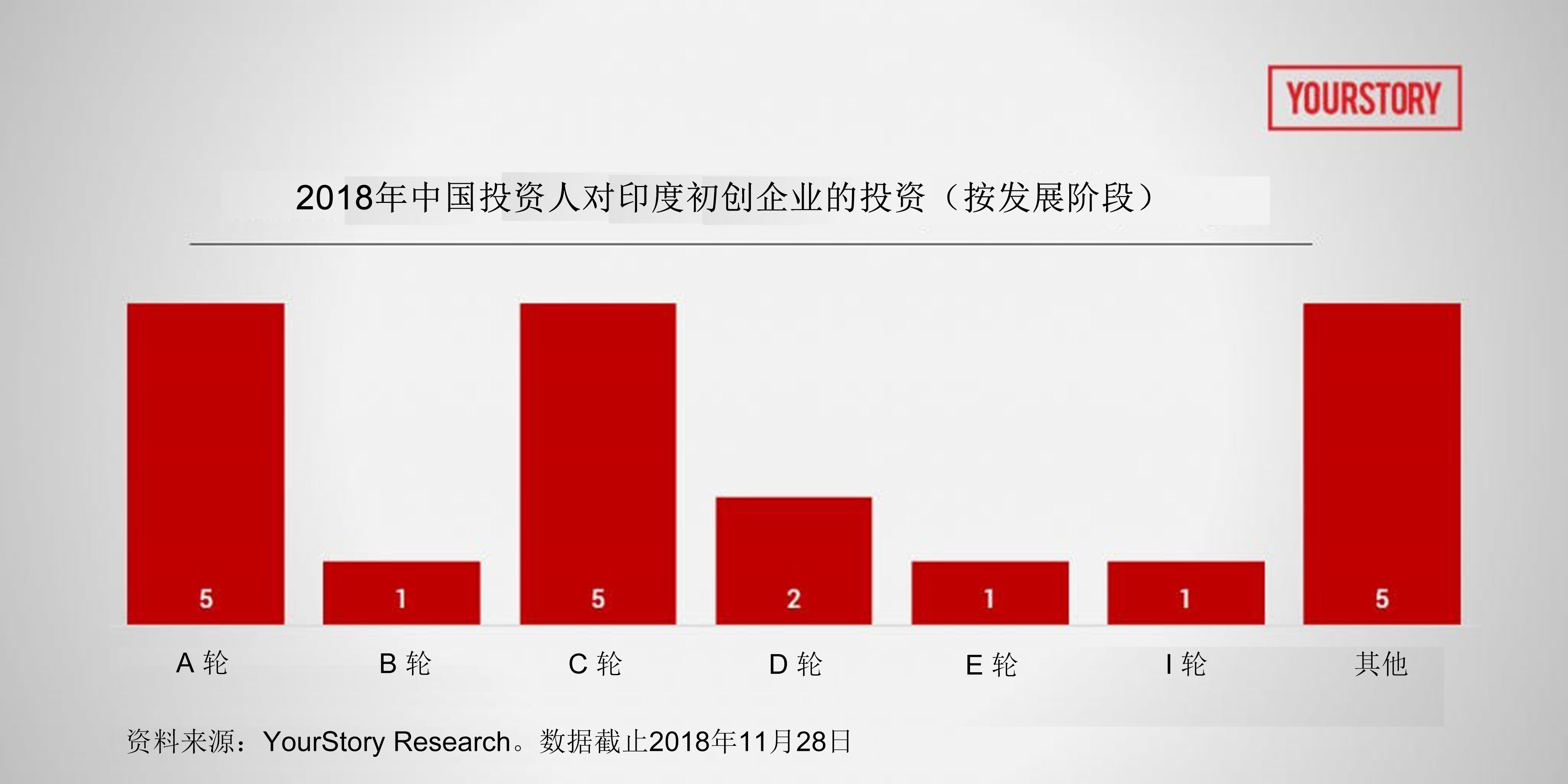 印度创投媒体公司 YourStory 的数据显示,2018年,中国风投公司对21家初创企业注资,而在2017年只投资了12家。但是,中国在2017年投资规模是28亿美元,到2018年则下降至17.5亿美元。不过,这种比较有失偏颇,因为像 Flipkart 和 Ola 这样的独角兽通过大规模融资圈走了25亿美元。