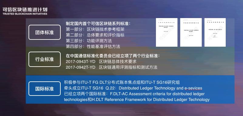 中国信通院还在深入参与国际区块链标准制定。我本人在联合国机构 - 国际电信联盟(ITU)下设的分布式账本标准焦点组担任副主席,我们的团队和国内很过企业一起,积极参与国际标准制定,牵头架构、评测等 ITU-T 建议书,为国际标准化贡献中国智慧。