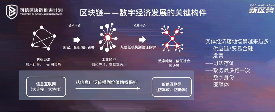 互联网发展前四十年,取得了巨大的成就,能够把信息瞬间传播到全球每个角落。然而,互联网 传递价值和信任,确很难。因为价值和信息有非常大的区别。我们有了区块链这样一个信任的机器,让我们数字经济到来的时候,建立信任,在互联网上传递信任和价值就变得容易多了。