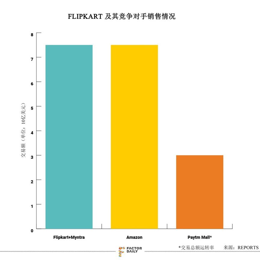 然而,根据最近的报道,亚马逊仍以75亿美元的 GMV(不计算促销和折扣的销量)保持微弱领先优势。Flipkart 自己平台的 GMV 为62亿美元,如果算上集团旗下公司 Myntra 和 Jabong 的销量,则与亚马逊持平。
