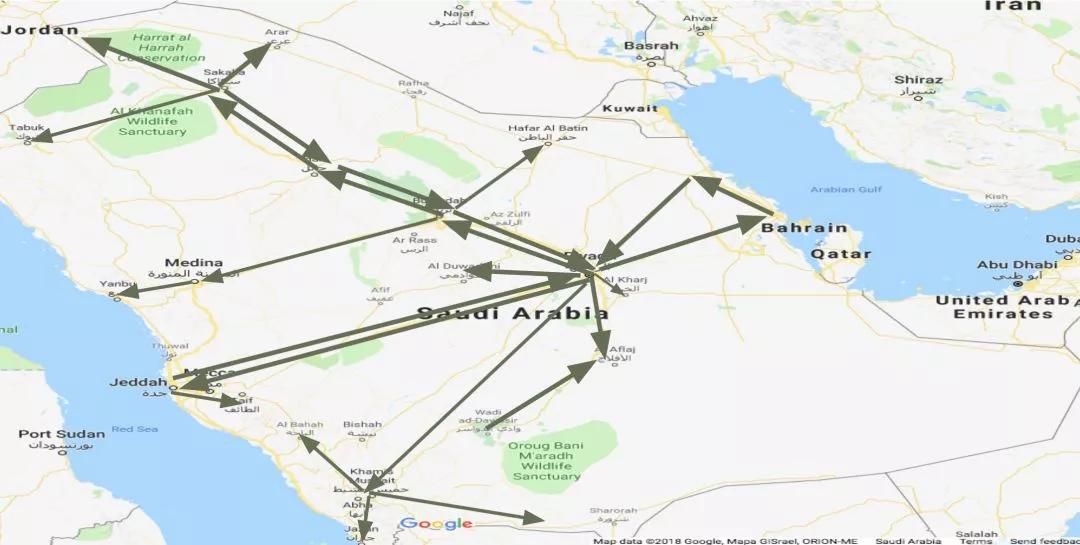 沙特地处沙漠腹地,全国分成三个大片区:利雅得区域,吉达区域和达曼区域。
