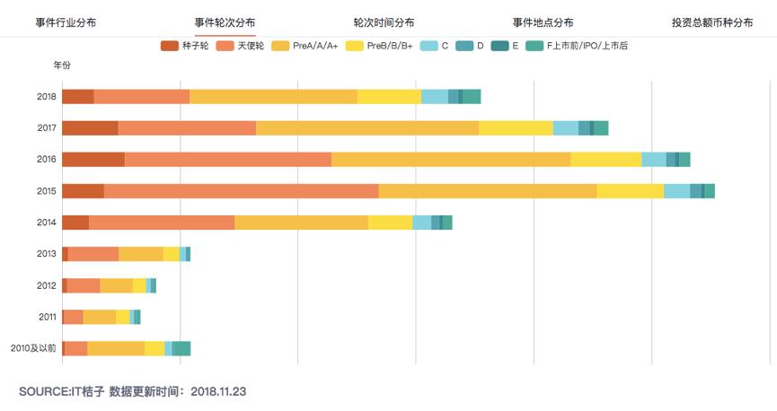 历年融资事件轮次分布 来源:IT桔子