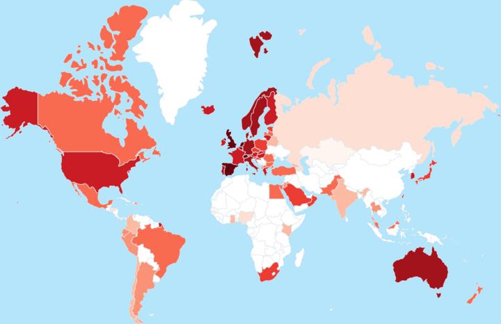 ▲ 目前全球尚不支持携号转网的地区(显示为白色)