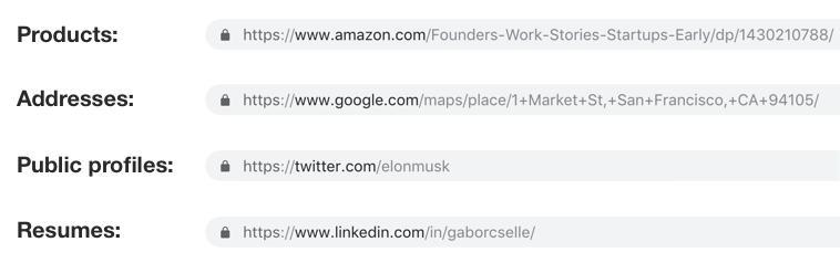 这里还有一个链接使用的及时性弱点、永久性更强的经典例子。那就是URL中的产品可以充当某个概念或者事物的标准表示的时候。下面有几个例子: