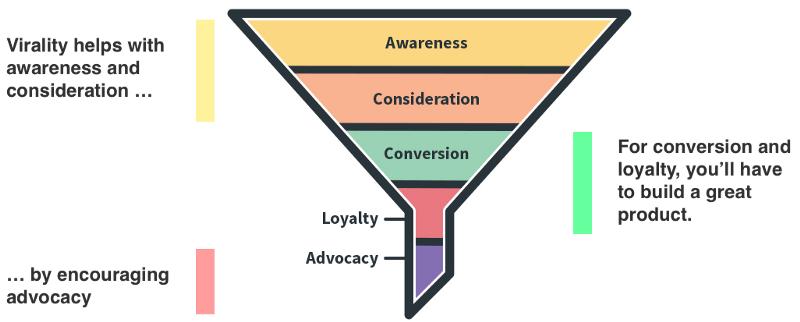 典型的营销漏斗以及病毒式营销可以起到帮助作用的地方。