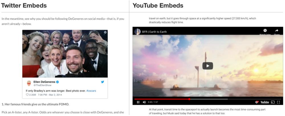 嵌入还充当了潜在用户的启发工具的作用:用户看到例子就能够知道你的平台上是什么类型的内容,知道都有什么样的作者,并且会效仿你的平台上的行为。此外,在自己已经信任的网站上看到内容,让你的平台也显得可信。