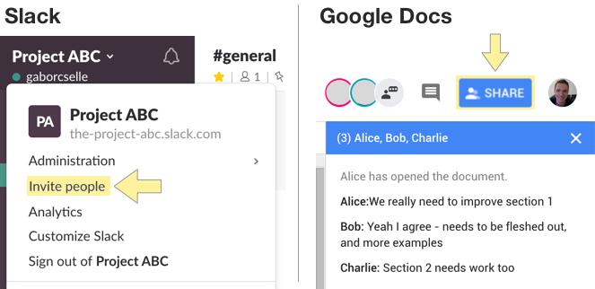 在Slack和Google Docs上邀请别人一起协作