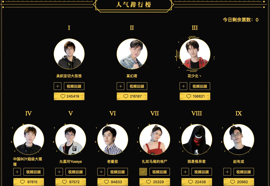 此外,目前节目人气票数排名靠前的10位选手中,有6位是来自B站的game男团,这也说明了节目观众群体的偏好。