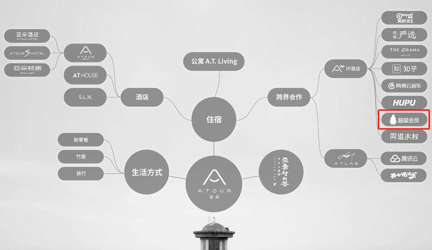 所以,这一次,亚朵选择QQ超级会员去找到它的“亚群体”,倒也不意外。今年年中开始,深圳南山区深南大道上的亚朵酒店一改前颜,门面上多出了一个QQ企鹅的形象。