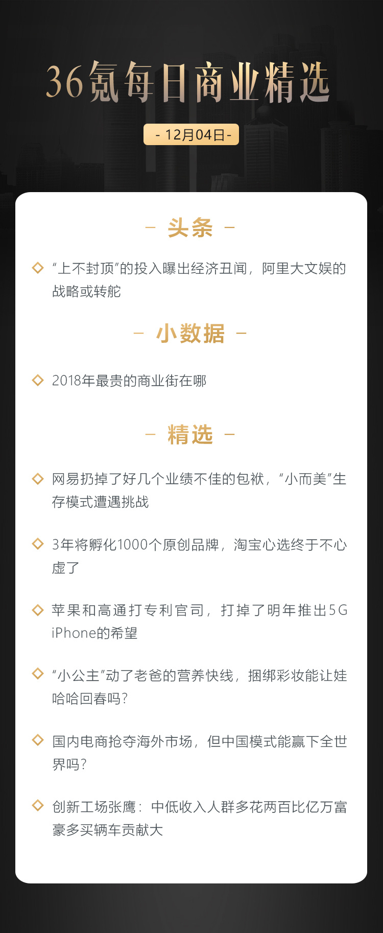 本文来自36氪付费栏目《36氪每日商业精选》——12月4日
