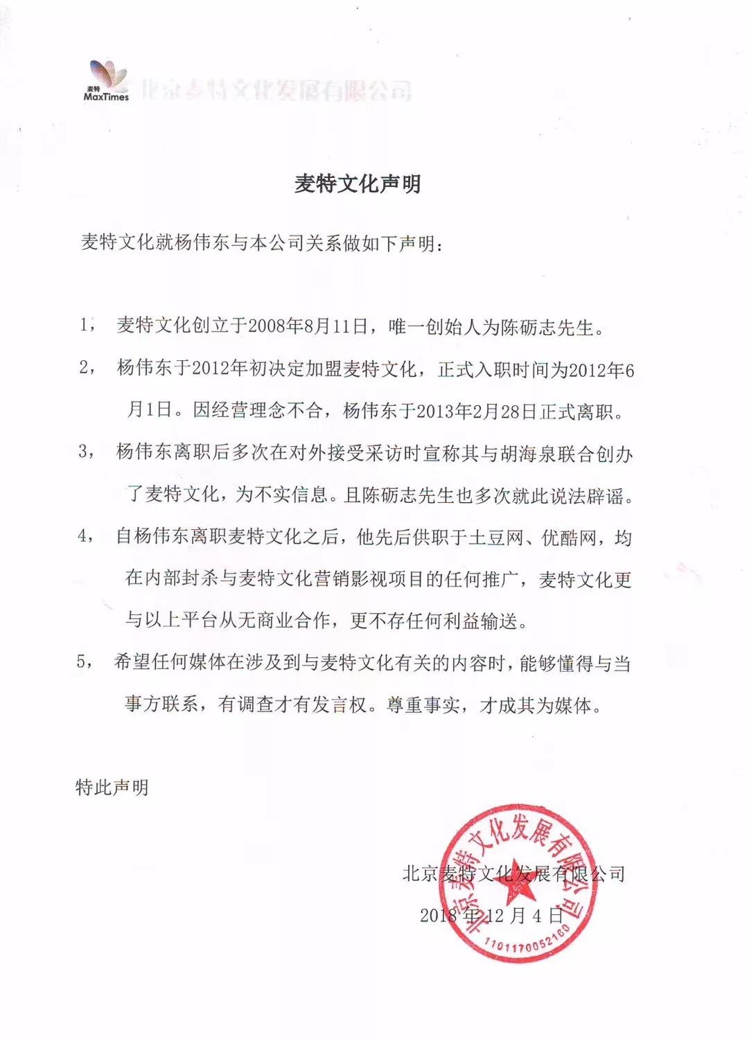 有人试图扒出杨伟东在职期间的争议或污点,称他曾对自己作为股东的麦特文化和巨匠文化进行利益输送。但麦特文化CEO陈砺志言辞激烈地否认了:“还利益输送?我们被他掌管的平台封杀了多少年啊!”