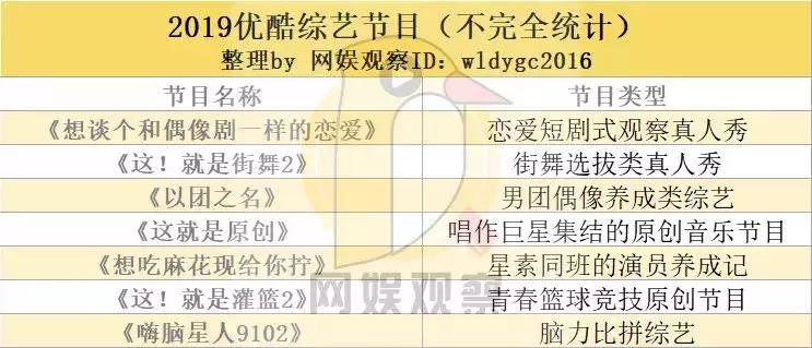 对优酷掌门人来说,综艺和剧都是要亲自抓的,是为主要KPI。据网娱观察(ID:wldygc2016)不完全统计,明年优酷主要项目大致如下: