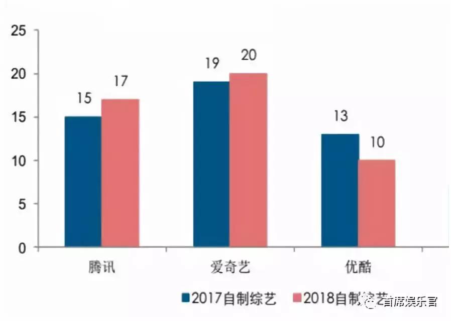 从官网和相关推介资料可以得出,2018年三大平台原本预计要推出167部大剧和145档综艺。再综合长江证券研究所的资料来看,三大平台自制综艺的变化较小,除优酷在总量上是下降的外,爱奇艺和腾讯有略微增长。
