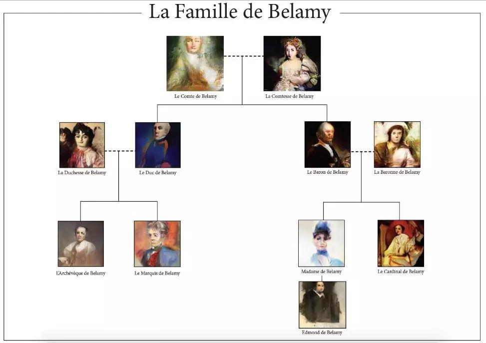 其实,Obvious 不仅仅“画”了这一张被佳士得拍卖的画,还“画”了整个家族的照片。Obvious 将系列命名为“La famille de Belamy”(Belamy 大致翻译为法语中的“好伙伴”,彰显对 GAN 算法的创造者 Ian Goodfellow 的致敬)。