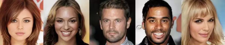 因为,这上面的图片其实是英伟达利用生成对抗网络的成果之一。事实上,这些照片里的名人,都不是真正的名人,而是英伟达根据名人数据库,用 AI 生成的全部高清真实照片。