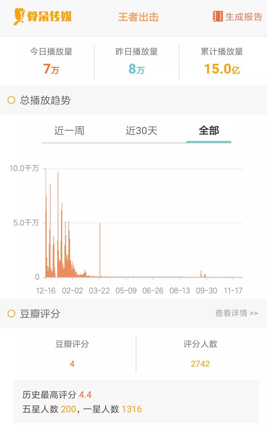 至于国民手游《王者荣耀》 ,它花了一年多时间,才推出首款IP联动产品。2017年6月底,明星队长田亮、胡夏、吴昕、李诞领衔的《集结吧王者》正式亮相,第一季共九集,均集播放量在2000万左右。成绩着实辣眼睛,明显不及格。