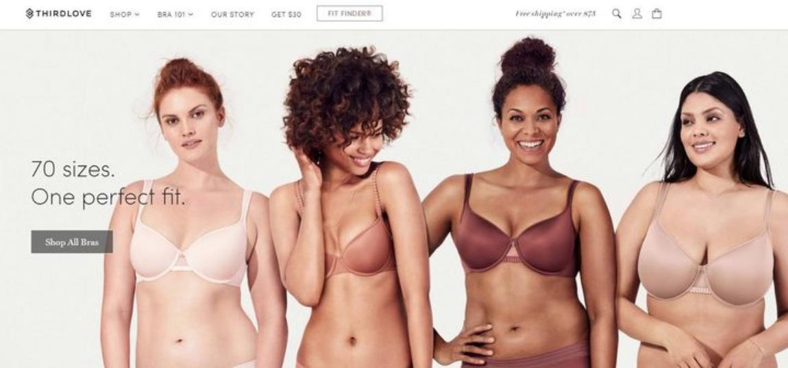 ThirdLove 是这两年美国快速崛起的内衣品牌,销售的内衣尺寸都有 74 种,目标是为不同身材的女性服务,让女性在人生的不同阶段都能找到合适的内衣,虽然只创办了一年多,但今年的销售额就将达到 1.6 亿美元,估值也有 7.5 亿美元。