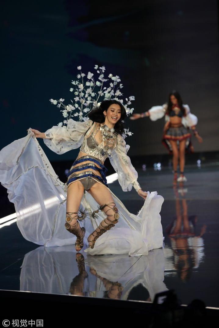 ▲ 奚梦瑶在上海维密秀上摔倒. 图片来自:视觉中国