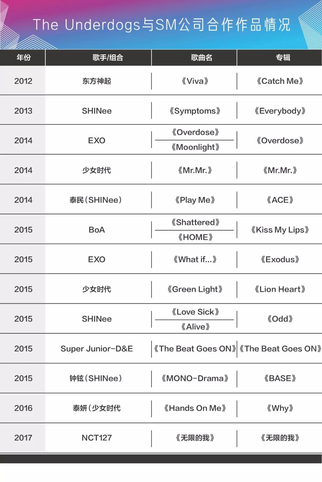以欧美创作团队The Underdogs为例,自2012年开始,The Underdogs开始与SM进行合作,参与制作SM旗下艺人的专辑。