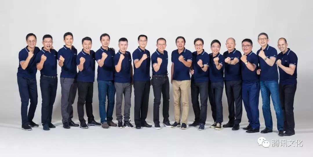 (从左到右依次为:Dowson、Xidan,James、Steven、Ls、Mark、Pony、Martin、Allen、Arthur、Daniel、Leon、SY、Johnlo、DW)via 腾讯文化
