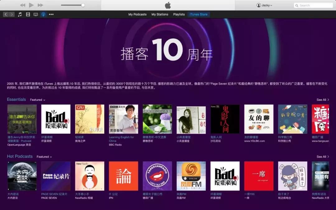 2012年,苹果Podcast在中国正式上线,中国播客们开始把节目托管到Podcast平台。一期长达170分钟的音频节目《七贱下天山》上线,这是由糖蒜广播、三角龙电台、鬼影人间、坏蛋调频、有的聊、YY Club、Gadio七家华语播客联合制作的节目。