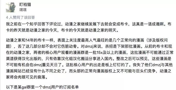知乎网友@盯裆猫在回答“如何评价动漫之家临时闭站”时表达了悲观预期,认为下架这批内容对于动漫之家而言的打击可能会是致命的。