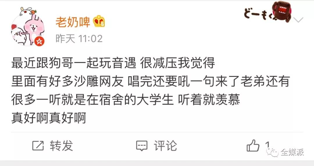 如果说朋友圈的强关系已经给人们带来一种过度修饰的负担,在社交迪厅里极力降低“关系”的比重,似乎成了社恐患者自我保护的策略。在生活的“低光”时刻,打开音遇吼上一嗓子,便成了宣泄压力的灵丹妙药。