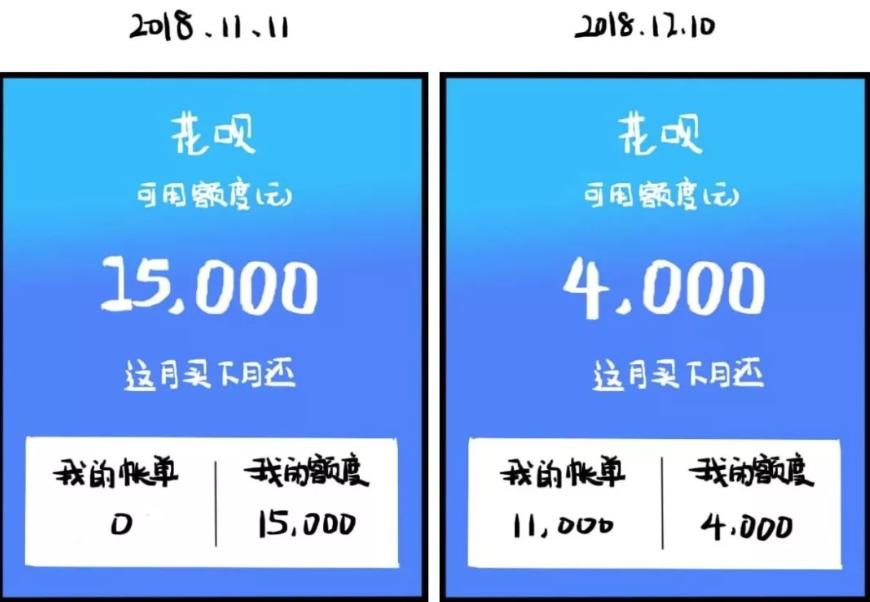 双十一期间提高的花呗额度是世界上最短的黄粱一梦,醒来还是该还款还款,该分期分期。看着自己只能还清“最低还款限额”的银行卡余额时,贫穷那冷冷的冰雨在你的脸上胡乱地拍。