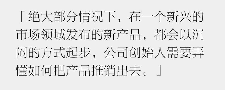 早期市场的创业者,所面临的最大挑战,也许就是从做出产品到销售出去——尤其是形成可重复的销售模式。偶尔,也有一些产品,一经推出就吸引到海量市场关注度和潮水般的订单咨询。然而,这样的情景非常罕见,这样的场景会让人觉得产品本身就能自下而上被接受,所以不需要销售。这是很容易犯的错误。绝大部分情况下,在一个新兴的市场领域发布的新产品,都会以沉闷的方式起步,公司创始人需要知道如何把产品销售出去。