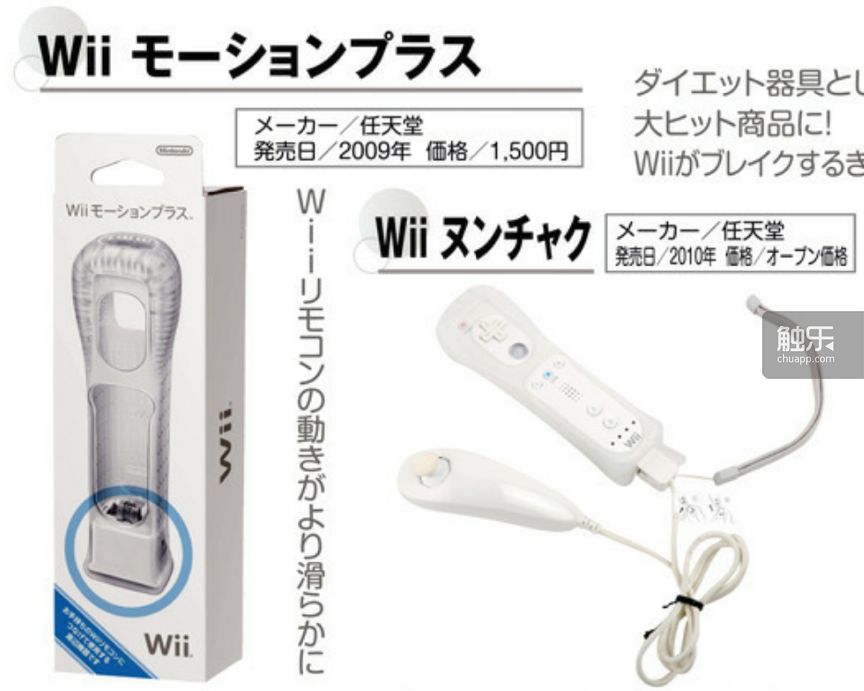 Wii Motion+和Wii双节棍:某些游戏需要使用被称为“双节棍”的副手柄,此外Wii Motion+搭载有先进的感应器,可以进行更为精准的动作探测