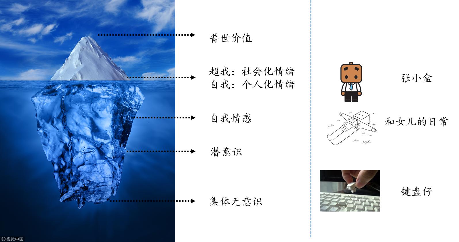 陈格雷认为,IP 和受众之间产生共鸣的层次可以类比成是一座冰山,从上而下依次是: