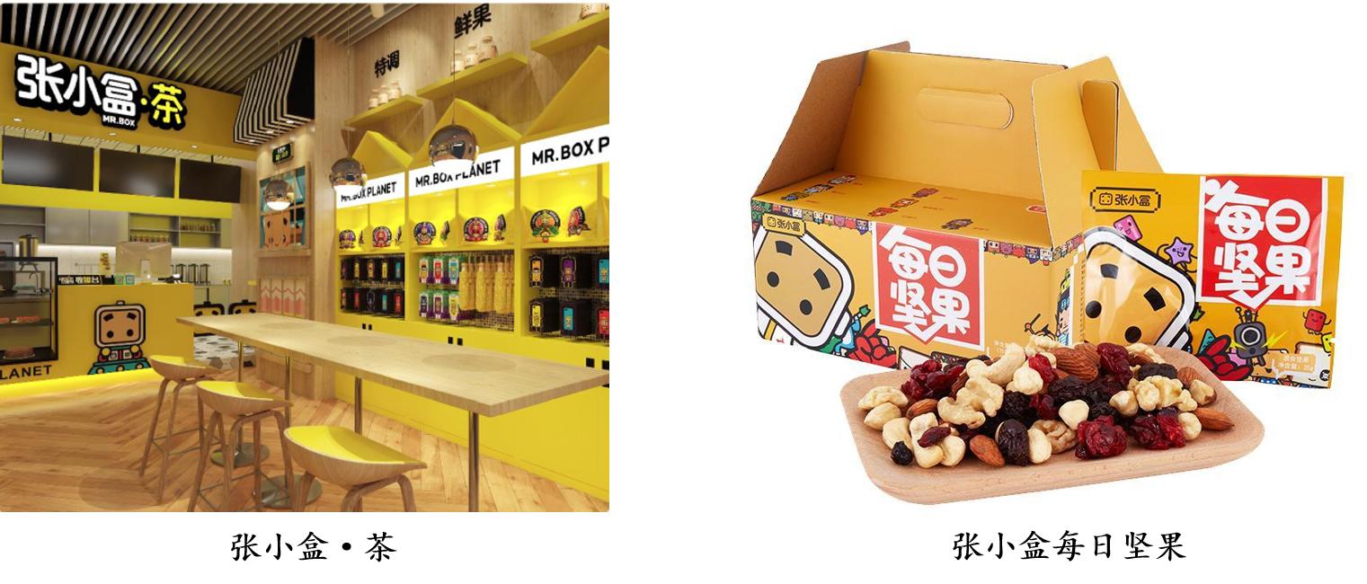 目前,张小盒·茶已经开了五家店,收到了 200 多家加盟店的订金;张小盒坚果则在主流线上渠道以及部分线下商超展开销售。