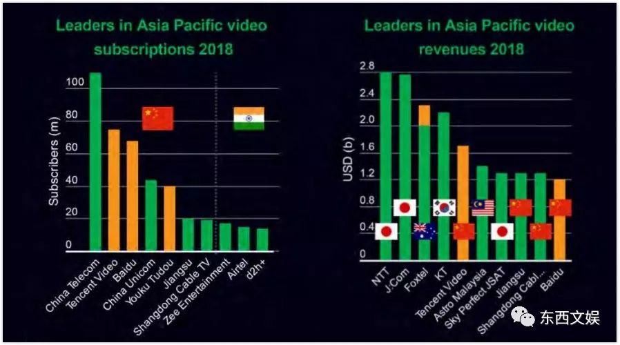 尽管国内影视监管潮让市场有所遇冷,而放眼至亚洲市场,数据显示电视和在线视频的内容投资持续增长,在这其中,本地和全球的流媒体平台正在侵占和支配包括电影、游戏、戏剧、剧集等在内的内容。视频订阅用户数量持续攀升,作为亚太地区视频订阅服务的主战场,中国和印度尤其受到关注。