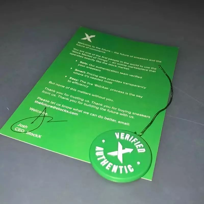 ▲卖家的货物通过鉴定之后,StockX就会在货物上套一个鉴定环。
