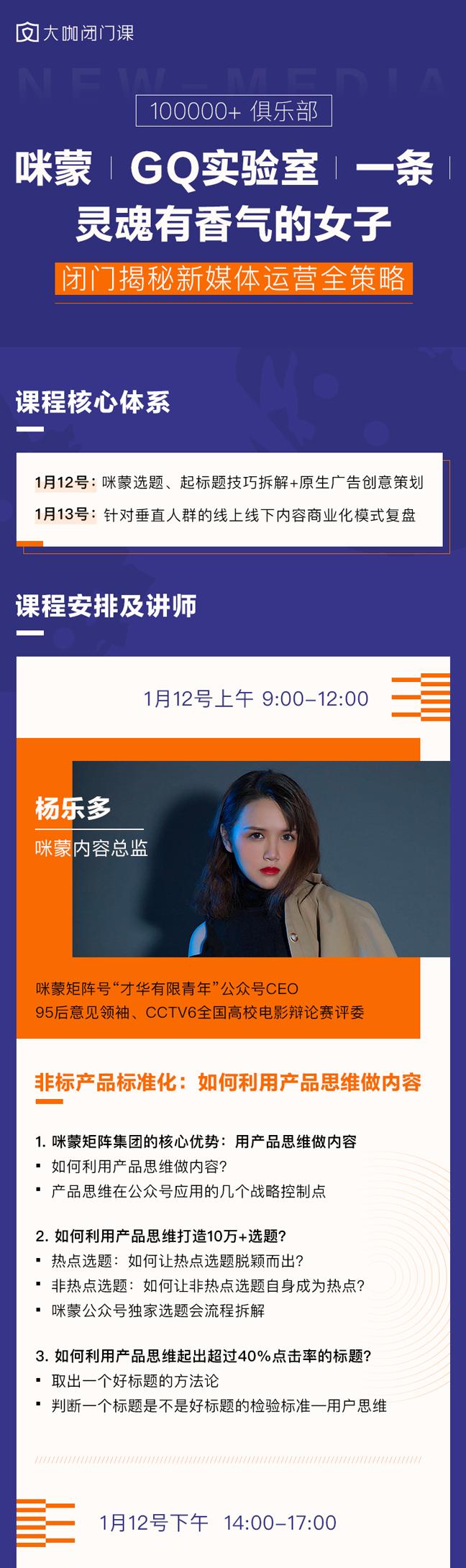 课程主题:咪蒙、GQ实验室、一条、灵魂有香气的女子,闭门揭秘新媒体运营全策略(点击报名)