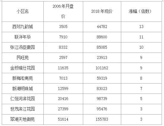 下图是10个小区的涨幅情况。