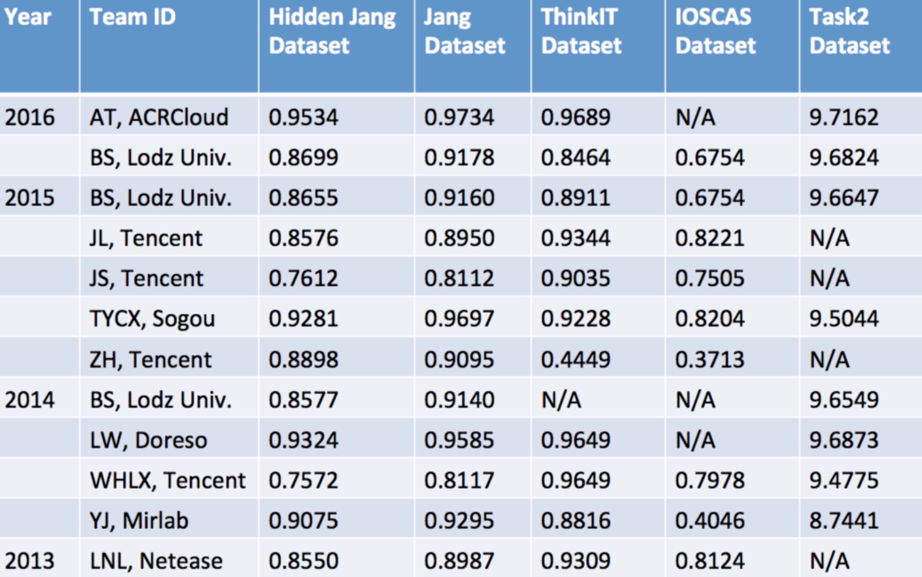 事实上,早在十年前便产品化的音频识别技术并非新鲜事,全球音乐信息检索竞赛 MIREX(Music Information Retrieval Evaluation eXchange)也是每年举办一次,历年参与比赛的公司也包括酷狗、腾讯、搜狗、网易等,而 ACRCloud 多次拿下过哼唱识别、音频指纹识别的第一名,同时也保持着该比赛历年最好成绩的记录。