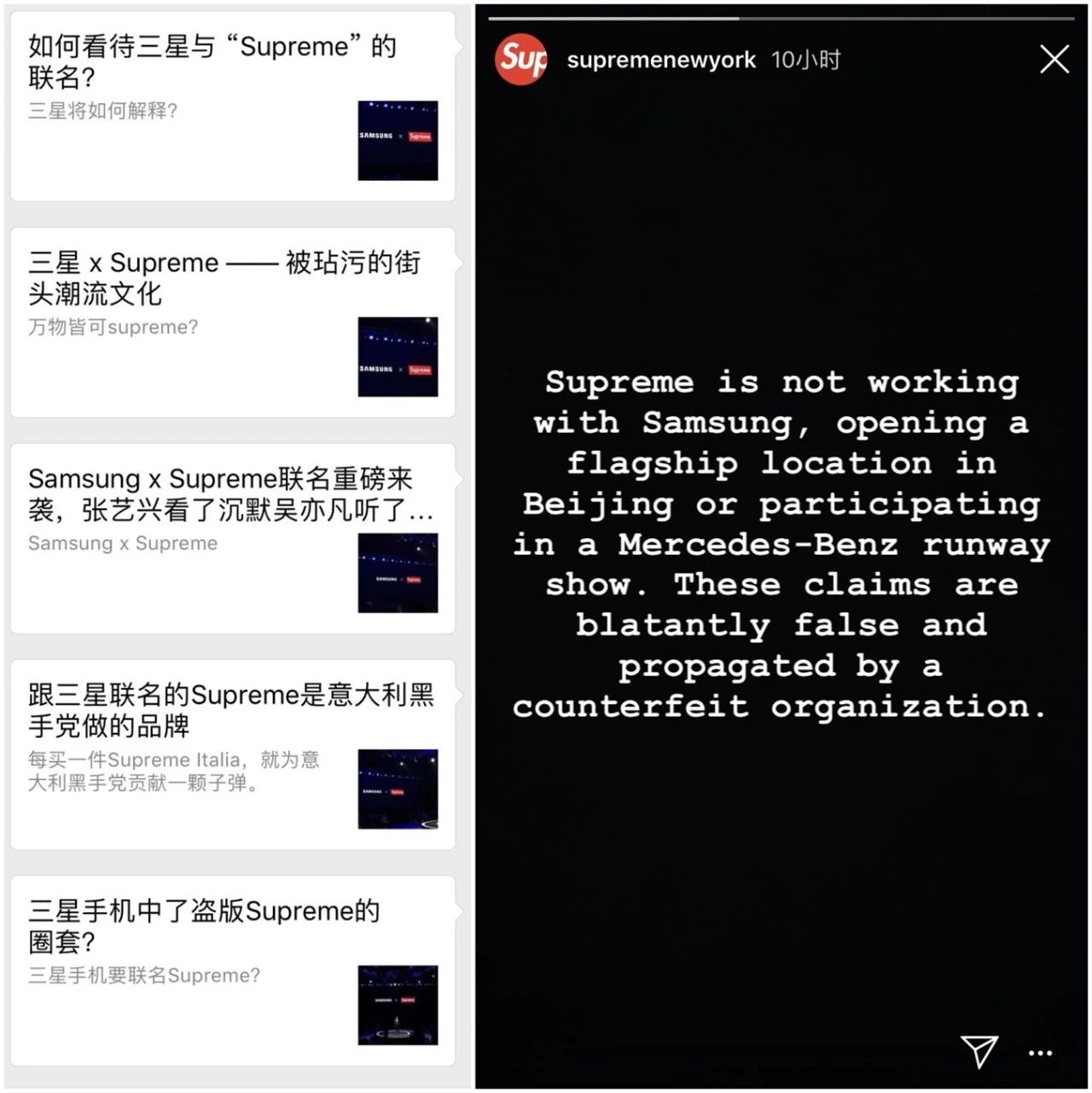 从深扒“李鬼”的身世,到街头文化的发展,媒体们狠狠地花式解读了一波,连带今天真正的 Supreme 发布的官方声明,表示“Supreme 没有与三星合作,也没有在北京开设旗舰店或参与梅赛德斯奔驰中心举办的活动。这些消息是公然的造假,由一家山寨公司进行了传播。”算是直接一锤把三星锤到了地里……