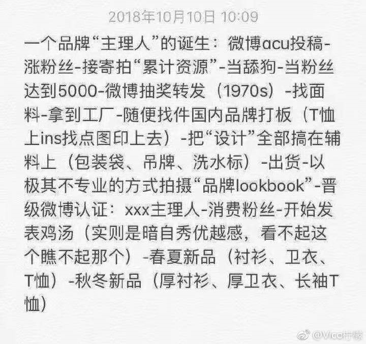 在潮流圈子曾经有个流行一时“表情包”,叫做“一个品牌‘主理人 ’的诞生”就是嘲讽这类所谓的国潮。