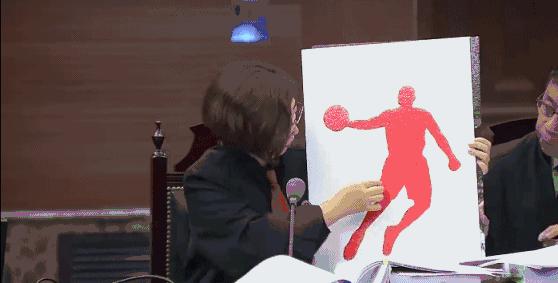 是不是散发着熟悉的味道?这不就像极了中国乔丹侵权美国的 Jordan Brand 嘛?法律层面,中国乔丹闪转腾挪,最终继续大摇大摆在市面上销售。不过,商标法庭上这逗乐大家的一幕倒是挺能说明问题: