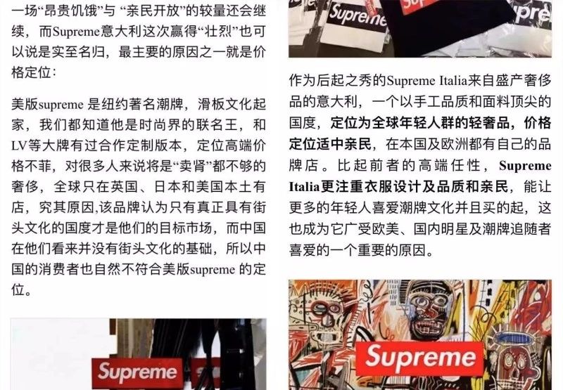 这些事件,都在媒体与社交网络中引起了热议,Supreme 的高附加值,依靠不断舆论营销造势达到顶峰,早已“出圈”影响到普罗大众。