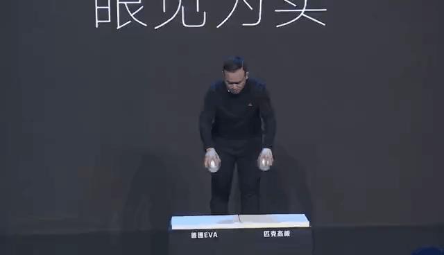 在发布会上,匹克也专门做了一段演示,用拍铅球来展示“态极”鞋底的弹力。可以看到,铅球从越高的地方落下,弹起得效果越明显,相较于普通 EVA 回弹更强。