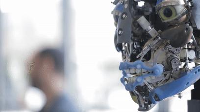 在他的表皮下便是严密的机械设计,在这些精密零件的运转下,机器人已经能够做出牙齿咬合,嘴角上扬、眨眼眯眼等细微的表情,并达到了惊人的仿真度。