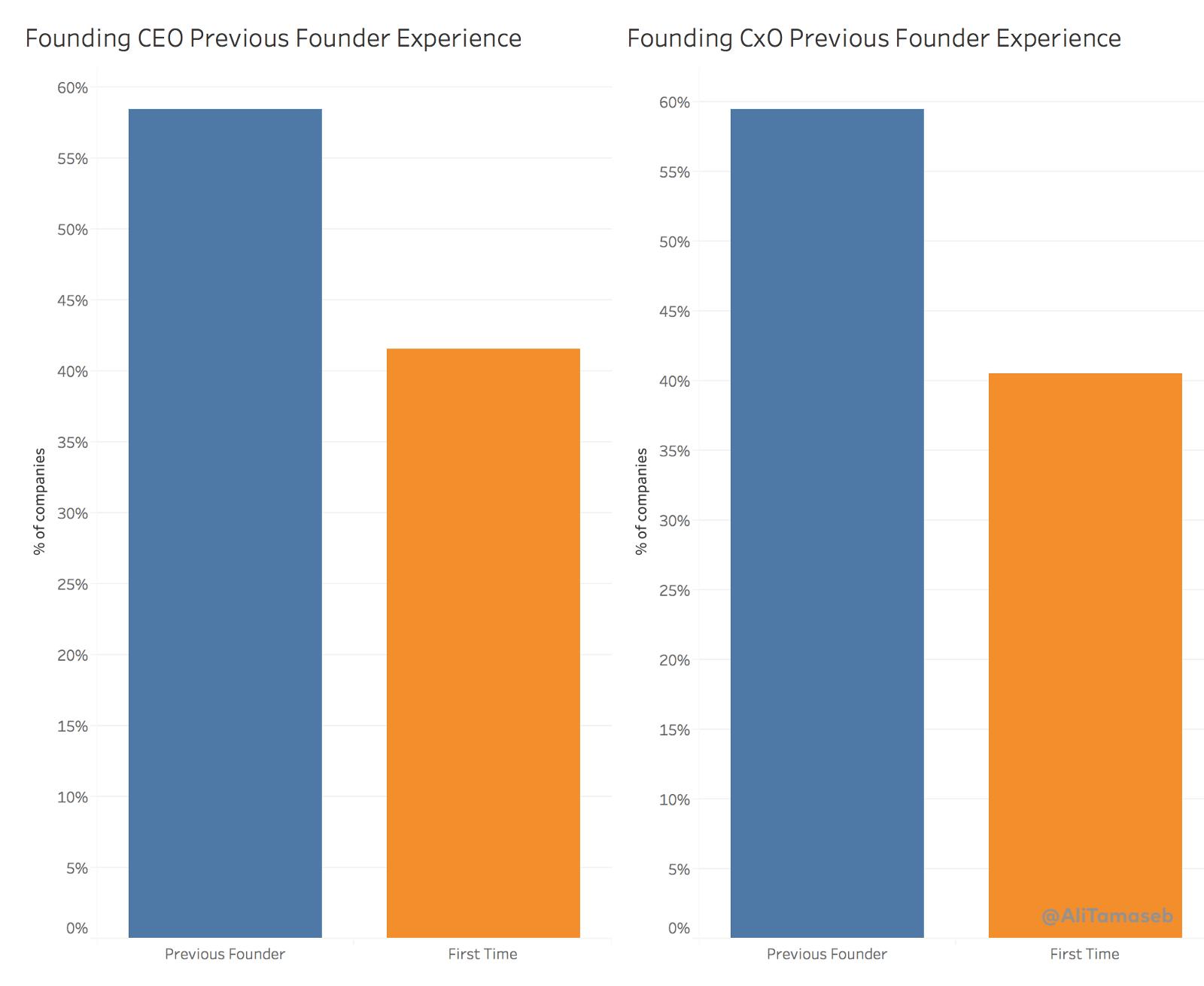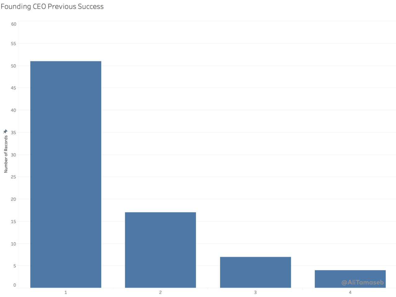 作为一个 VC,我们看到的大多数创始人都是第一次创业者。 然而,基于这些数据,估值数10亿美元的公司中,有很多是由连续创业者创办的。