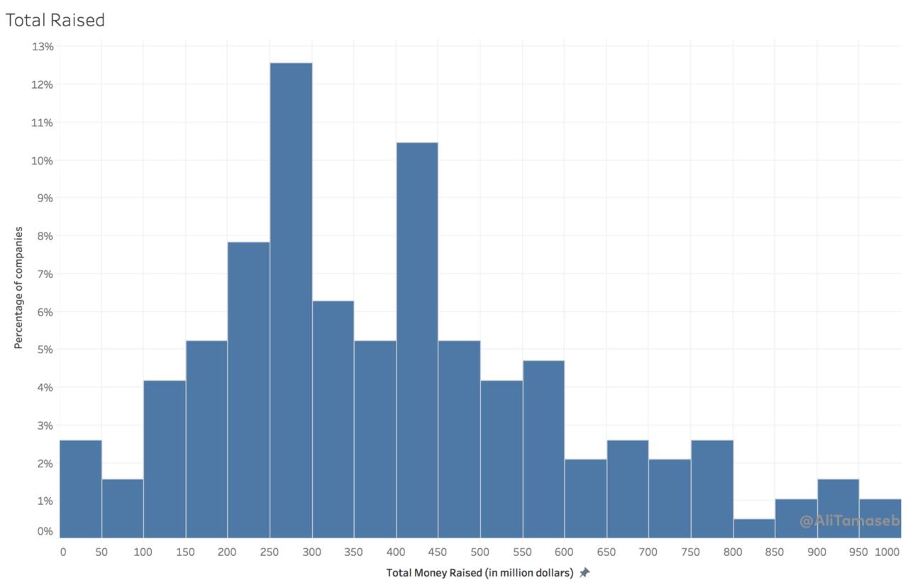基于每年成立的科技密集型公司的总数(不是很多),数10亿美元估值的科技密集型公司的比例高得离谱。