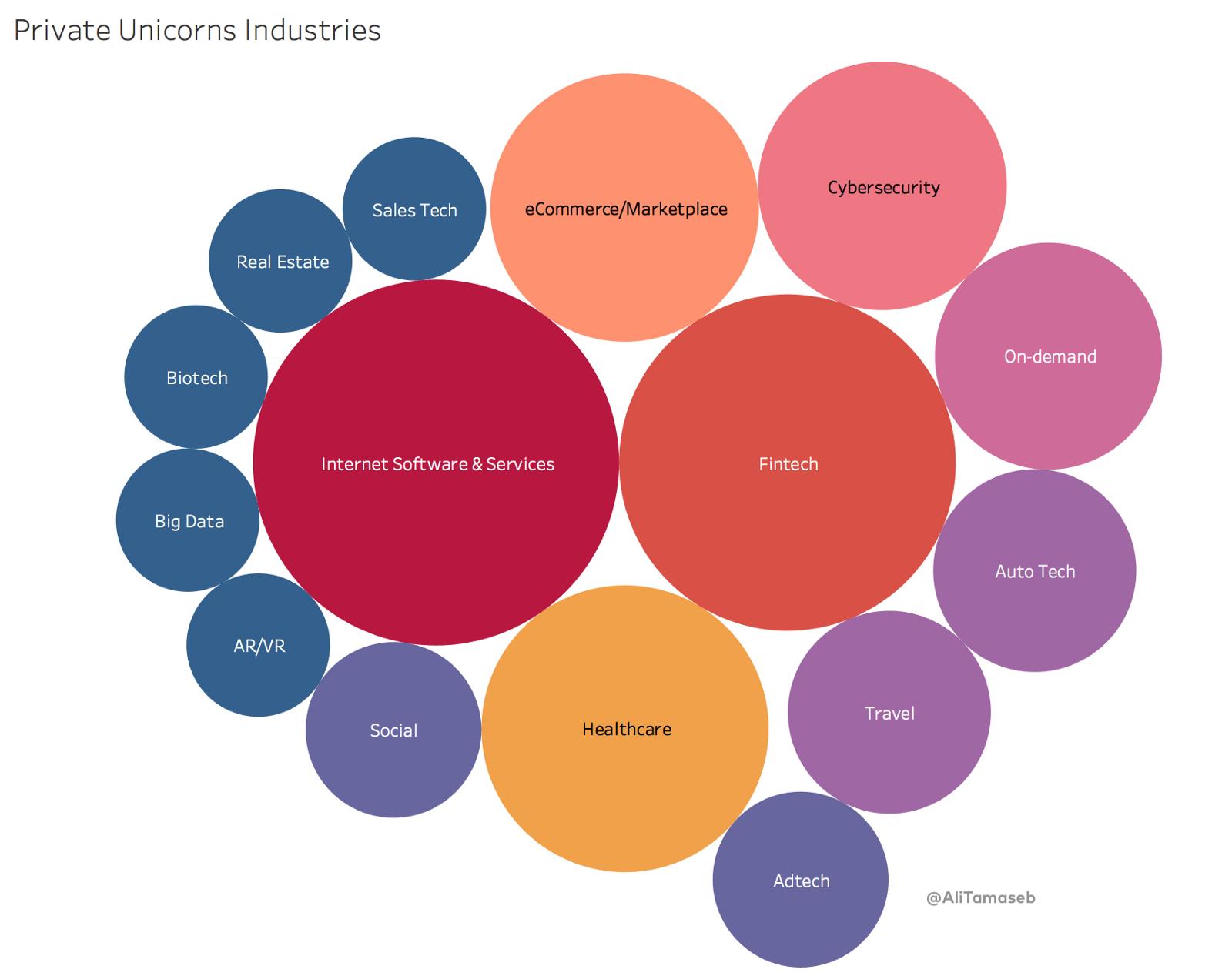 它还包括那些上市了的、被收购了的或私人融资超过10亿美元的创业公司,不仅仅局限于软件/科技行业,还有其他行业(生物技术、制药、医疗、能源、空间、硬件、金融等)。