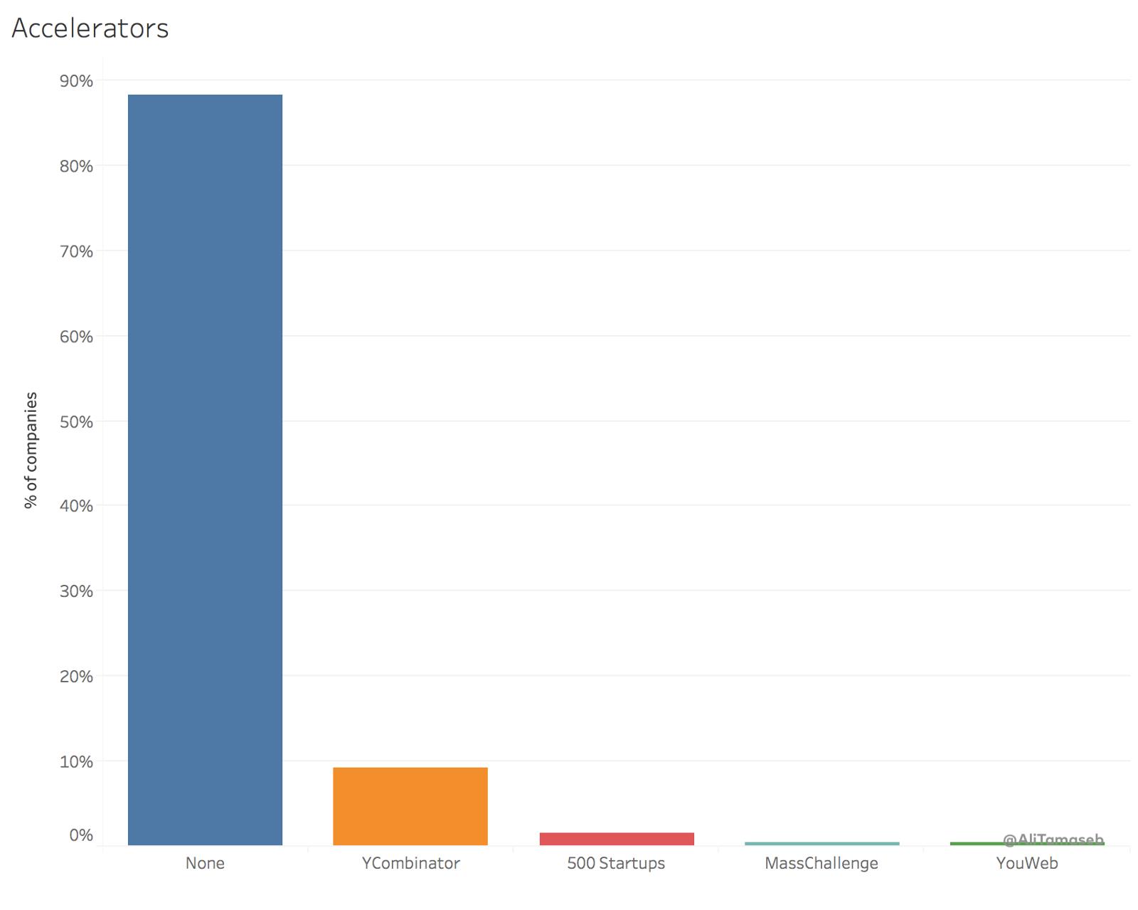 38、几乎90%的公司都没有经历任何加速器计划。 其余的,都在YCombinator排名第一