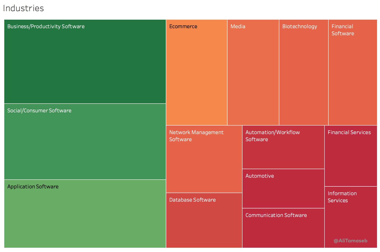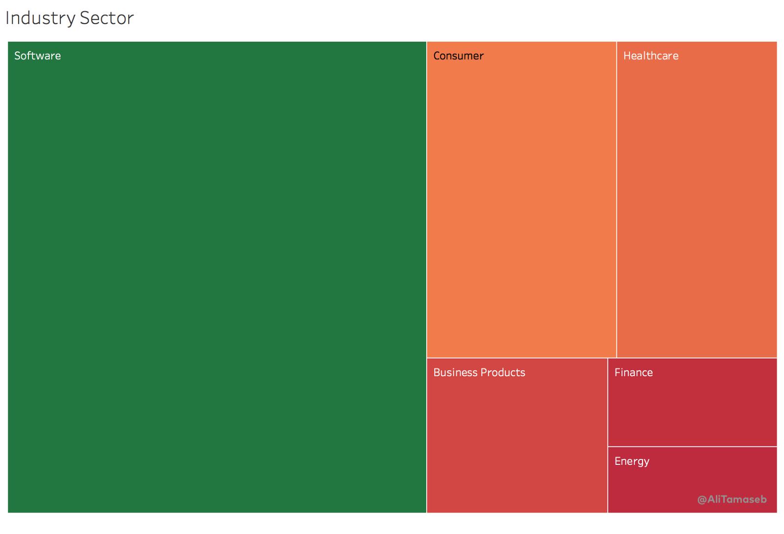 大部分都是软件公司(包括SaaS、Web等),其次是消费品公司(如服装品牌)和商业产品公司(如3D打印机)以及医疗保健/制药公司。