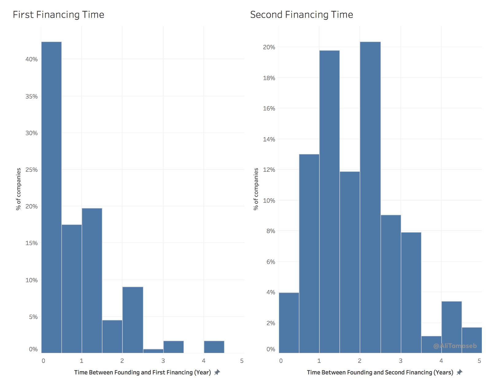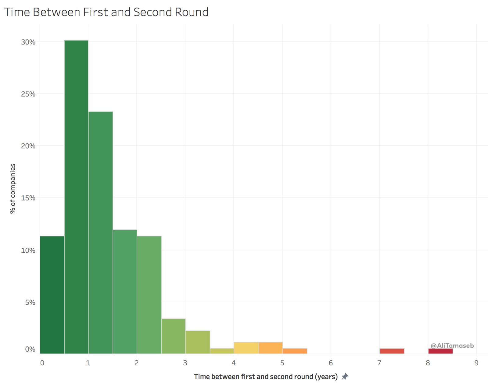 在许多情况下,它们还在第一轮融资后不到12个月的时间里完成了第二轮融资。
