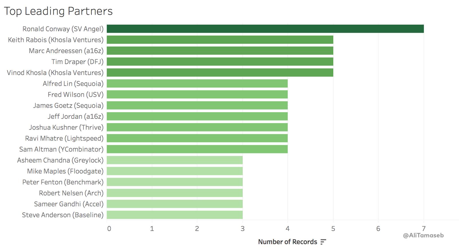 最终,主导投资的是风投公司的合伙人。 下表呈现的是他们的投资情况。